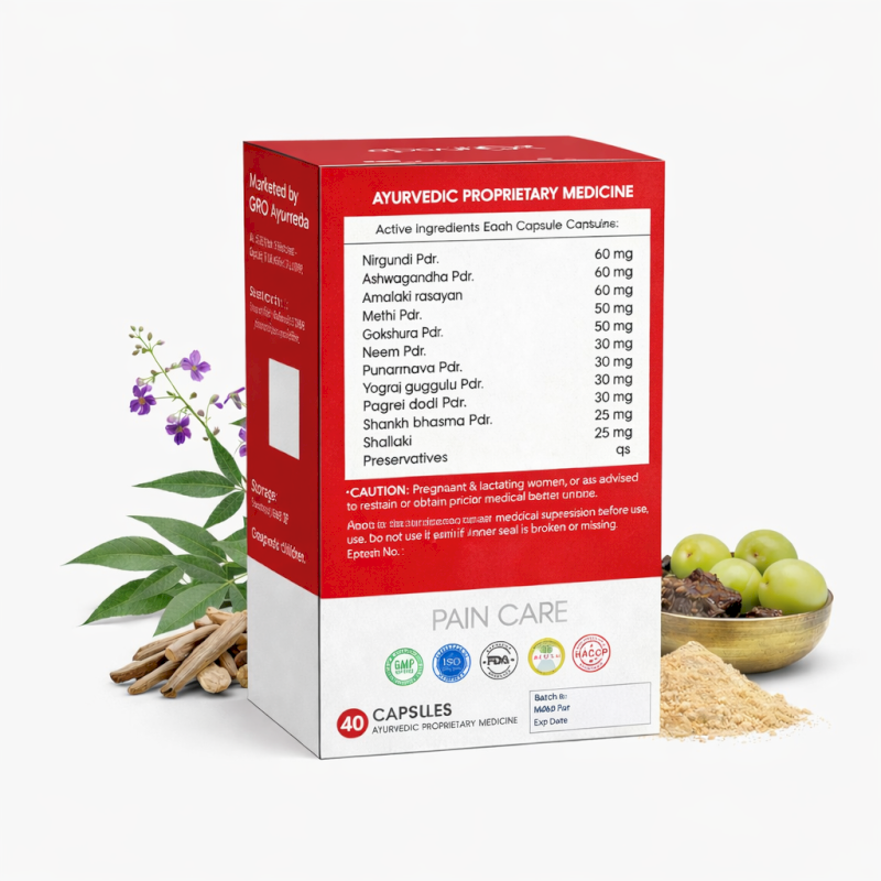 GROYESβ’ Joint Support Capsules are carefully formulated using classical Ayurvedic herbs known for their anti-inflammatory, analgesic, and joint-strengthening properties. The blend works synergistically to support cartilage health, improve joint lubrication, and promote long-term joint comfort.